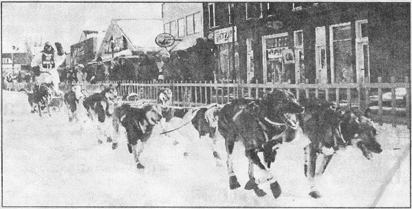 The day before the race, temperatures wre mild and a steady, heavy rain fell across the region, threatening trail conditions. Andre Landry, chief of security and Main Street start, and his crew of well over 100 volunteers worked all day and night Friday to set-up and prepare for the team' arrivals. Landry said that at midnight on Friday Main Street in Fort Kent looked like it was being prepared for a conoe tace. "The rain coming down was unbelievable," he said.